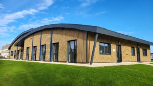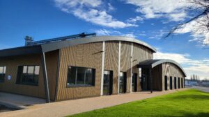 Ce bâtiment répond à la réglementation thermique RT 2012 et s’appuie sur une charpente métallique avec plancher collaborant. Il est équipé d’un bardage double peau intégrant 130 mm d’isolation en laine de roche, et d’une couverture multicouche isolée à 160 mm. Le confort thermique est assuré par un système de chauffage thermodynamique réversible, avec groupe extérieur et cassettes de distribution intérieures. La ventilation est de type double flux. À l’intérieur, les cloisons industrialisées vitrées apportent luminosité et transparence, tandis que les menuiseries extérieures en aluminium à double vitrage garantissent performance et durabilité.